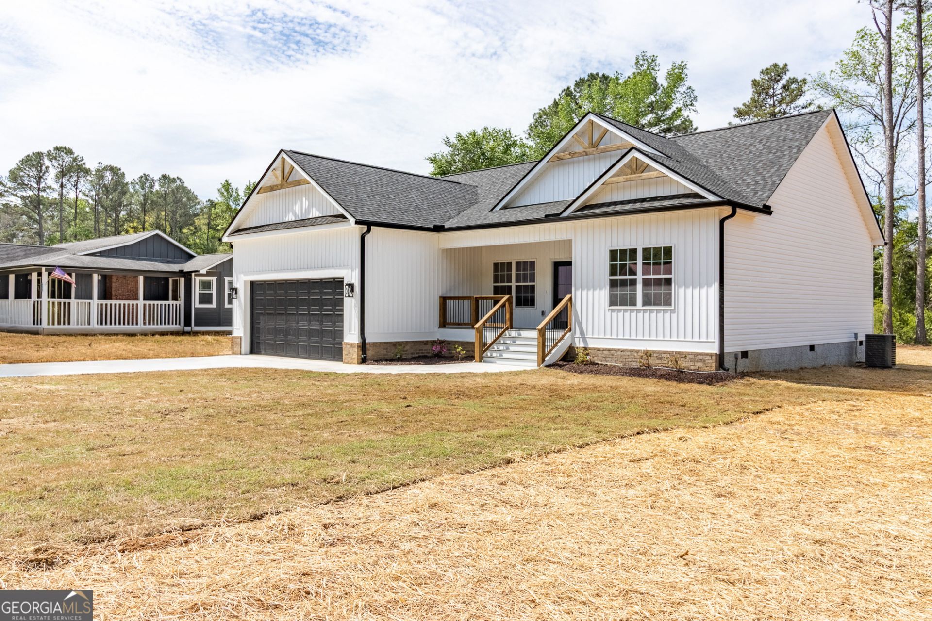 Welcome to your dream home in Woods Estates! This brand-new construction offers the perfect blend of modern design and everyday comfort. Featuring 3 spacious bedrooms and 2 full bathrooms across **over 1,600 square feet, this home is thoughtfully designed with an open, functional layout. Step inside to find gorgeous quartz countertops, a bright and inviting kitchen, and stylish finishes throughout. The primary suite is a true retreat with a walk-in closet, luxury walk-in shower, and double vanities topped with sleek touch-light mirrors-also featured in both bathrooms for a modern touch. Enjoy the convenience of a two-car garage and the peace of mind that comes with a 1-year builder's warranty. Situated on a flat, level lot almost half an acre, this property offers plenty of space for kids, pets, and outdoor entertaining. Located in the desirable Woods Estates subdivision